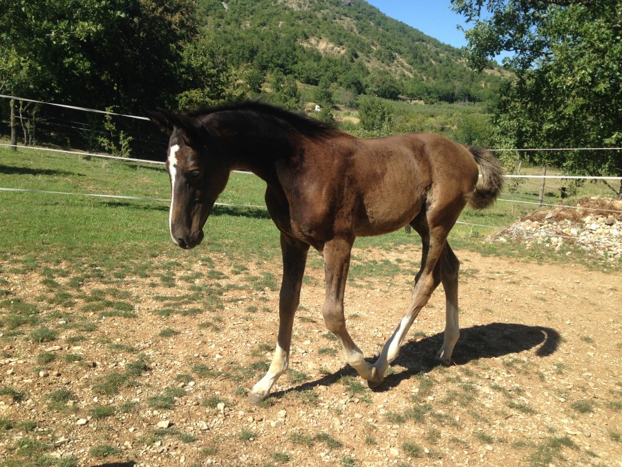 Golden Delight, femelle par Hilkens black delight et Pucy d'Iselay bai mais va foncé. Née le 4 avril à 335 jours de gestation.