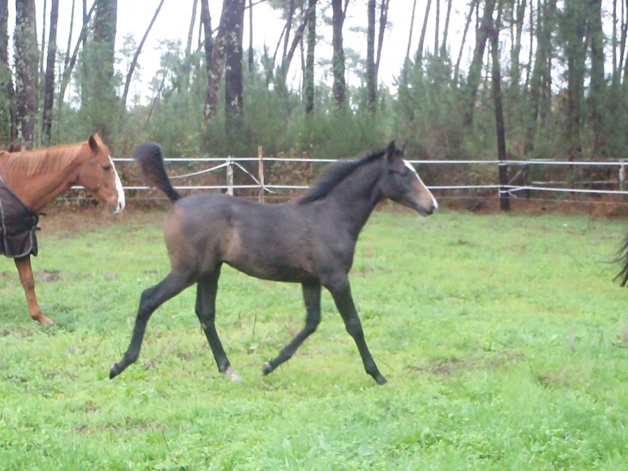 Golden Delight, femelle par Hilkens black delight et Pucy d'Iselay bai mais va foncé. Née le 4 avril à 335 jours de gestation.