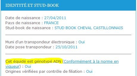 gavrochesun s'est ce que je pensais aussi mais sur le site des haras il est noté non pour le genotypage
