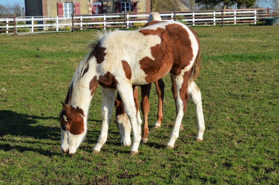 Parents: Cheyenne (Appaloosa - ONC ) et Carbone de la Caboterie, alias Chaman (Paint Horse x Pinto - ONC)
