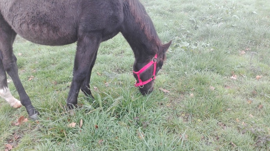 Bonjours tout le monde, Gebralzac est arrivé ce matin à la maison quand j'étais à l'école apparemment sa a été un peu dur pour le faire monter dans le van, il ne voulait pas du tout monter dedans, alors que d'habitude il y allais presque tous seul. Mais bon, il est bien arrivé et mange tranquillement dans son pré, à dit bonjour au poneys d'à côté et à fait un peu le fou fou ^^ Bonnes nouvelles, son ventre à quand même bien diminué et il a repris un peu d'état, l'éleveuse l'avais vermifuger. Ce matin, crottins bien sans vers ni rien. Rendez-vous chez le maréchal, pour qu'il regarde ses vilain aplombs!! Sinon tous va bien, et le sevrage s'est super bien déroulé, il était déjà bien détaché de sa mère, il a hennit 5-6 fois et puis c'était bon, un peu plus dur pour sa mère... J'espère que tous va bien se passer, puisqu'il est tout seul... quelques photos: