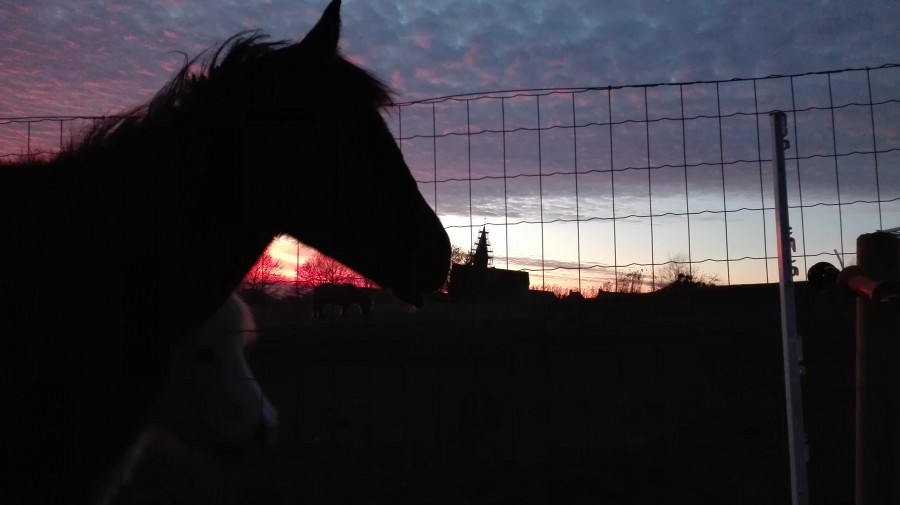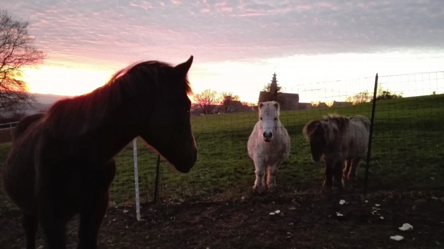Viking est sous la neige qui tombe par gros flocons ! Tout se passe bien, il se fait bien à sa nouvelle vie (au pré la journée en fonction du temps et à l'écurie le soir), avec ses deux copines. Il a retrouvé des copains la semaine passée pour jouer avec des poulains de son âge.