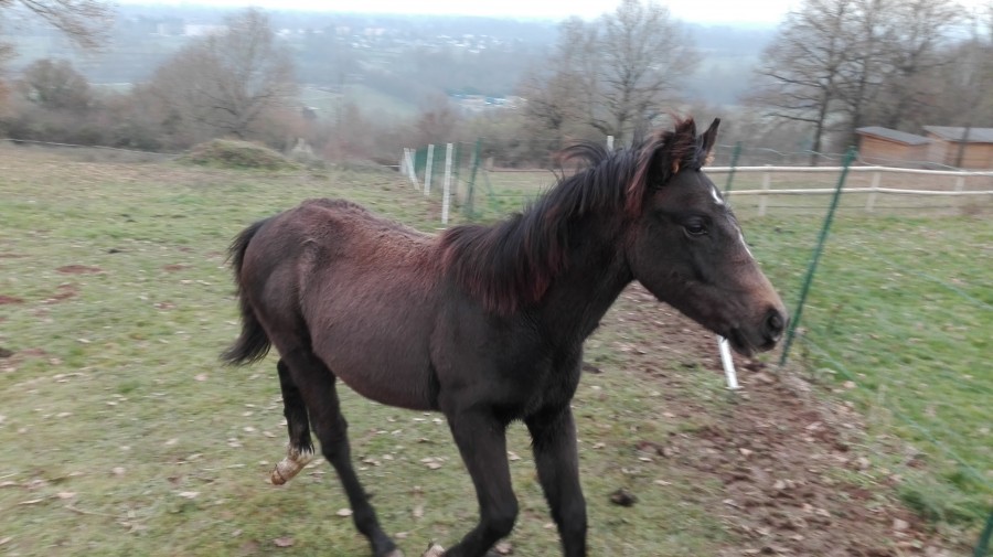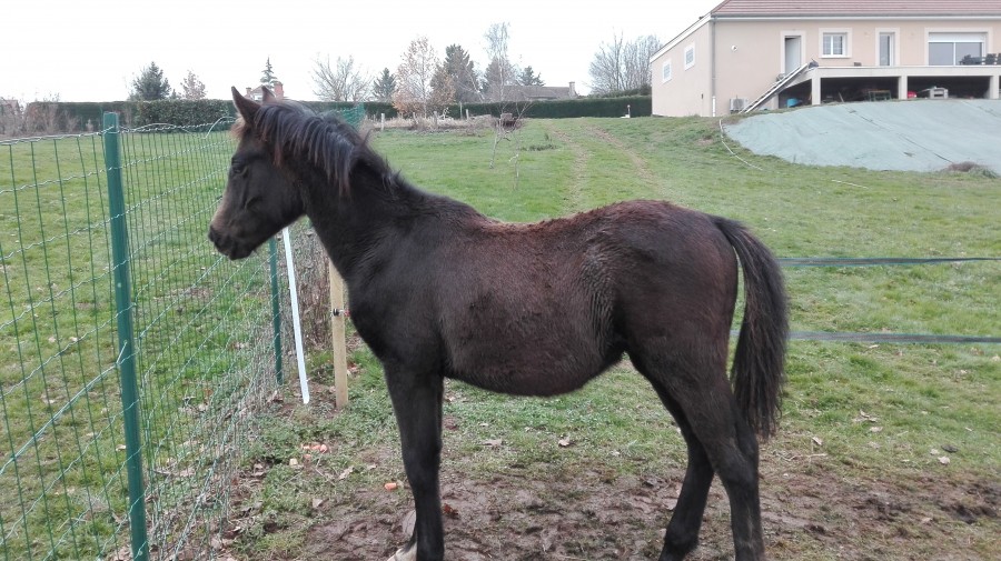 Golden Delight, femelle par Hilkens black delight et Pucy d'Iselay bai mais va foncé. Née le 4 avril à 335 jours de gestation.