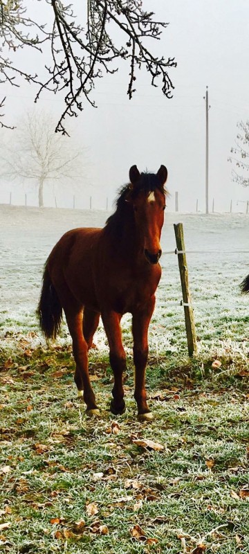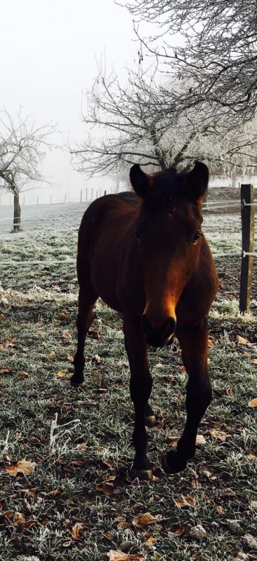 Quelques petites nouvelles de Gebralzac. Il mange beaucoup mieux maintenant, et accepte la carotte et la pomme, et bien sur plus aucune difficulté pour mangé ses floconnées, il en rafolle maintenant! Il semble pourtant quand même mal vivre le fait d'être tous seul, il paraît triste on n'a pas vu le voisin depuis, alors aucune nouvelle concernant le possible rassemblement avec ses poneys, mais si tous se passe bien (je ne veux pas non plus m'avancer), il n'y aura plus besoin car je vais peut être avoir mon propre cheval, qui sera donc avec Gebralzac ! C'est un magnifique TF de 11 ans réformé de course, en bonne santé, juste il a eu une tendinite plus jeune, donc il sera monté que occasionnellement en balade, et la queue cassée, qui s'est bien remise, il faut juste un abri obligatoirement l'été, car il arrive moins bien à combattre les insectes ! donc on le sauve d'une possible mort à la boucherie car à causse de sa queue, il ne peut plus participer aux courses. Voilà, c'est n'est pas encore sûr à 100%, mais c'est déjà bien avancé pour que ce soit le cas!