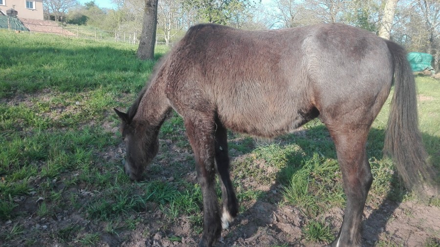 Mon poulain est dans le même état que le tien Mamzelle mais il est actuellement dans un paddock de 1500m2, pas le choix, donc il n'a pas d'herbe. Je lui donne du foin et une grosse brouette d'herbe coupée par jour mais ça ne suffit pas. Sûr que je vais devoir très vite recommencer à le complémenter s'il reste là mais ça m'embête vraiment de lui donner du concentré en dehors de l'hiver