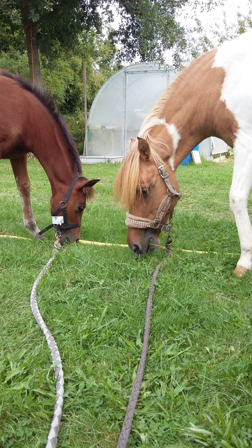 deux solutions, soit je mets tout le monde ensemble ( ils sont 4) pdt un petit moment et j’enlève olympe de temps en tmps et de plus en plus longtps histoire que freya s'habitue aux autres et à l'absence de sa mère pour au final laisser freya avec mon anglo, il est a 7 ans et il est très joueur et sociable donc je pense que ça ira très bien . et olympe je la mettrais dans un autre pré avec mon autre ponette qui est un peu plus âgée et avec laquelle elle s'entend très bien.