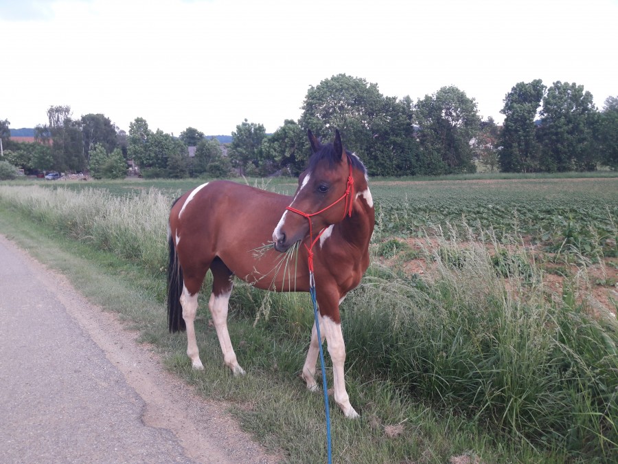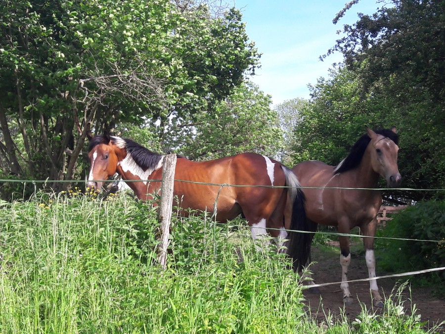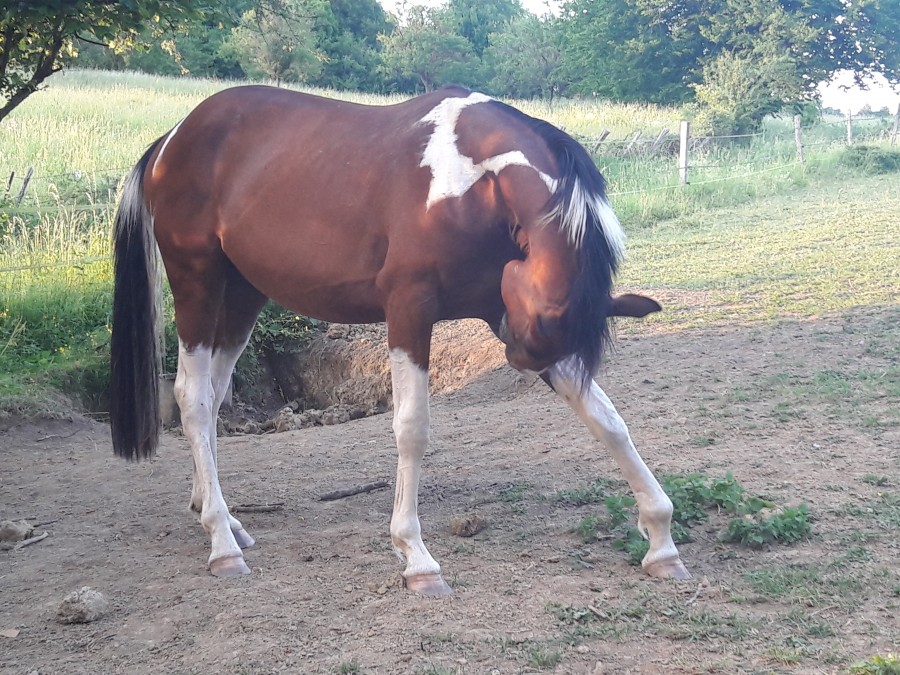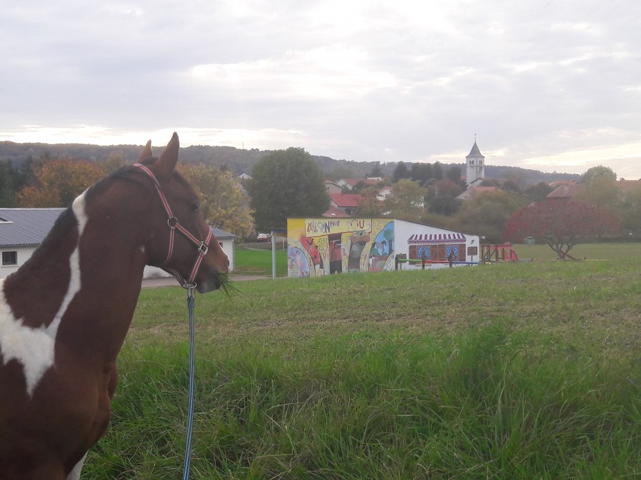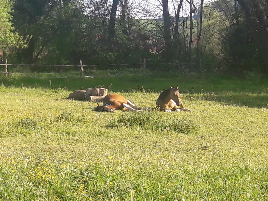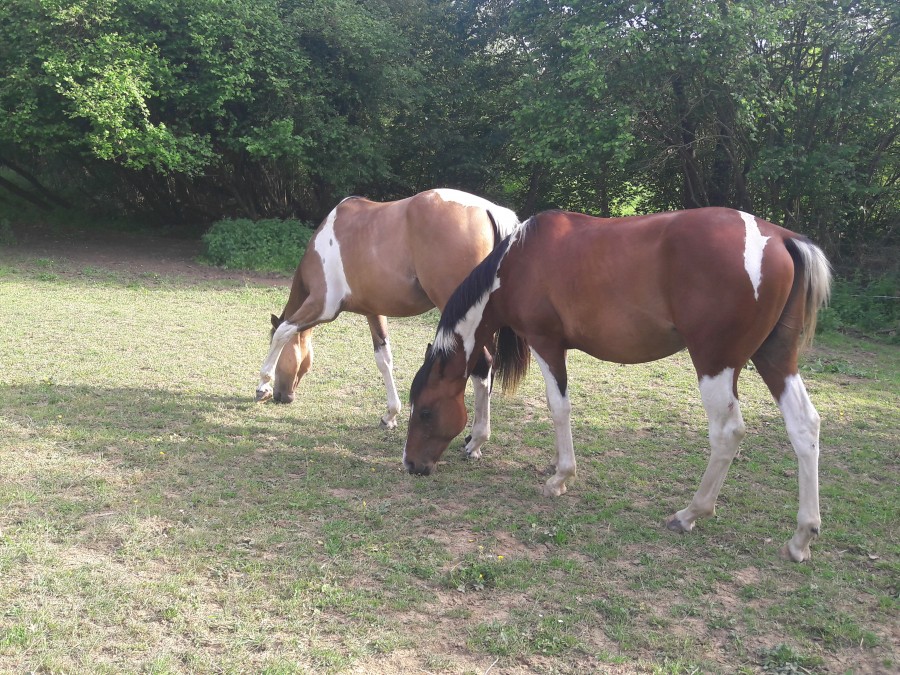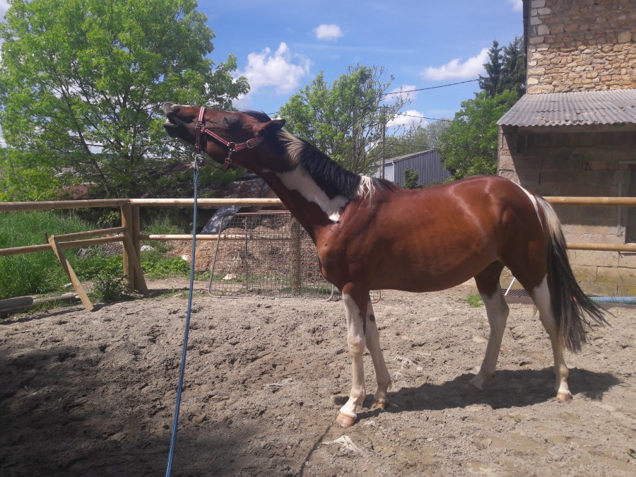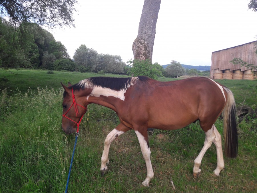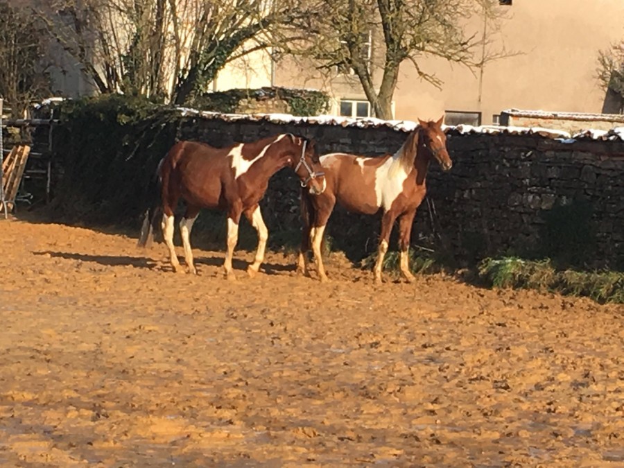 Une semaine plus tard, pâture avec un copain entier du même âge, par la suite balades en main et découverte des environs.
