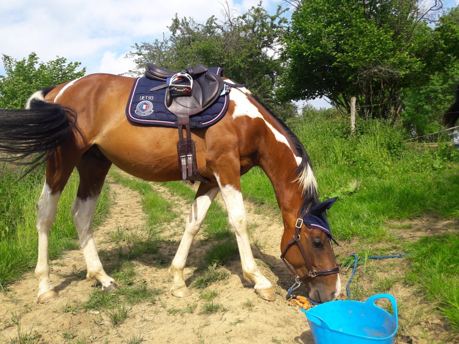 Un jour d'été, je tente la selle 2 minutes, et Flag montre que, comme tous les hommes lol, tant qu'il y a de la bouffe, rien ne peut le perturber
