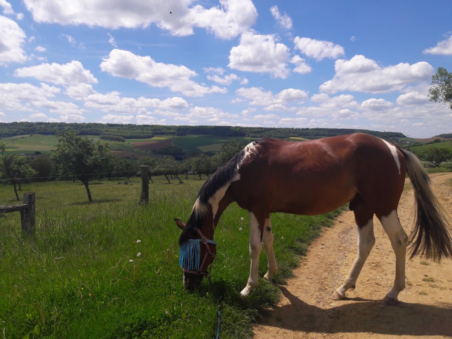 Le temps passe tranquillement, poney vit sa vie, je vais le voir tous les jours ou presque, je passe mon temps à le regarder au pré, et une fois de temps en temps on sort en balade.