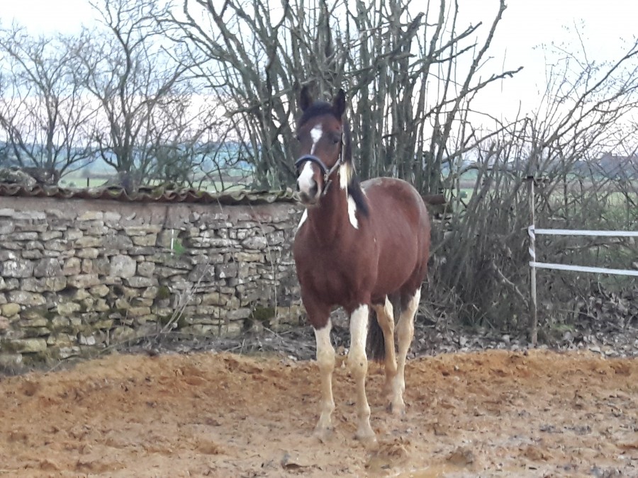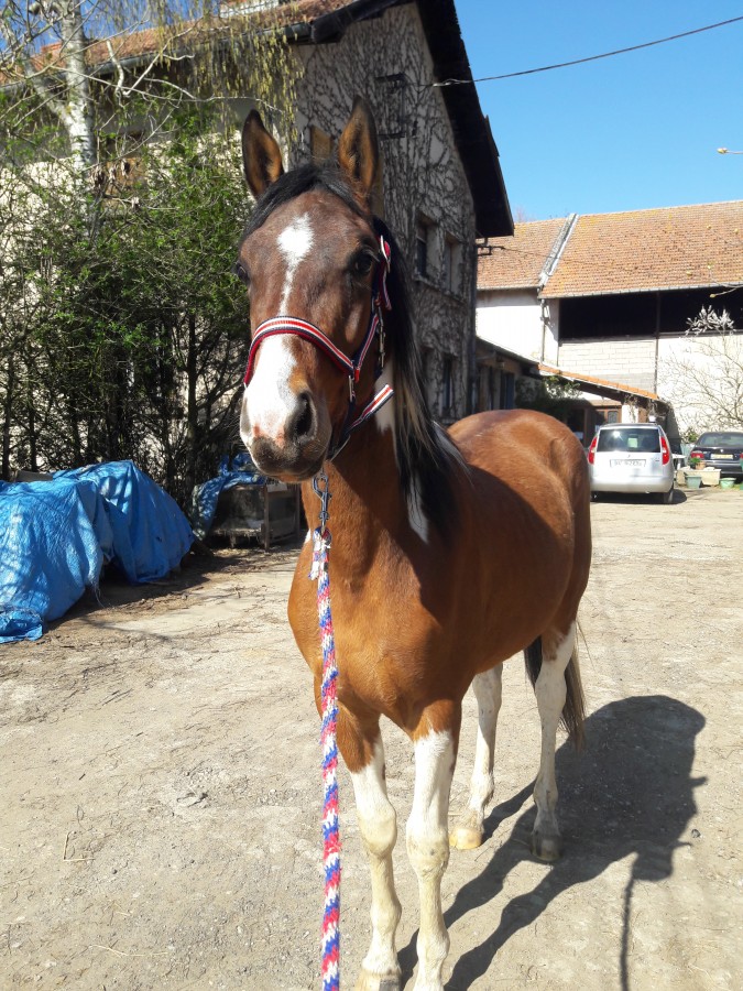 Arrivée du poney en province, le 27 mars 2017: Frais comme un gardon après un voyage en camion de 5h. Le transporteur m'a dit que c'était une valise, d'un calme olympien, un titou de 2 ans adorable, un régal à transporter.