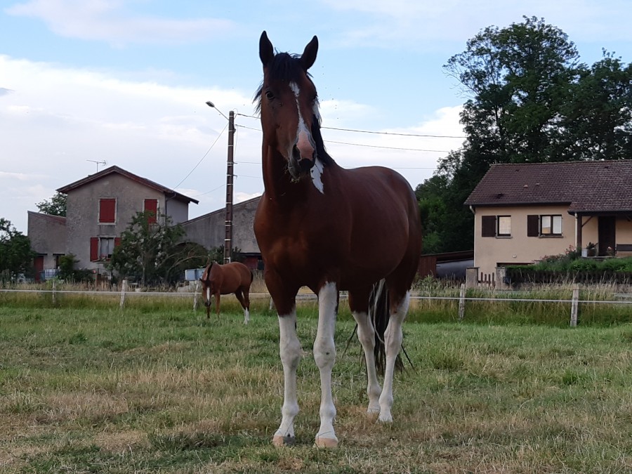 Il a encore la croupe plus haute que le garrot ou bien c'est le terrain qui est en pente ?