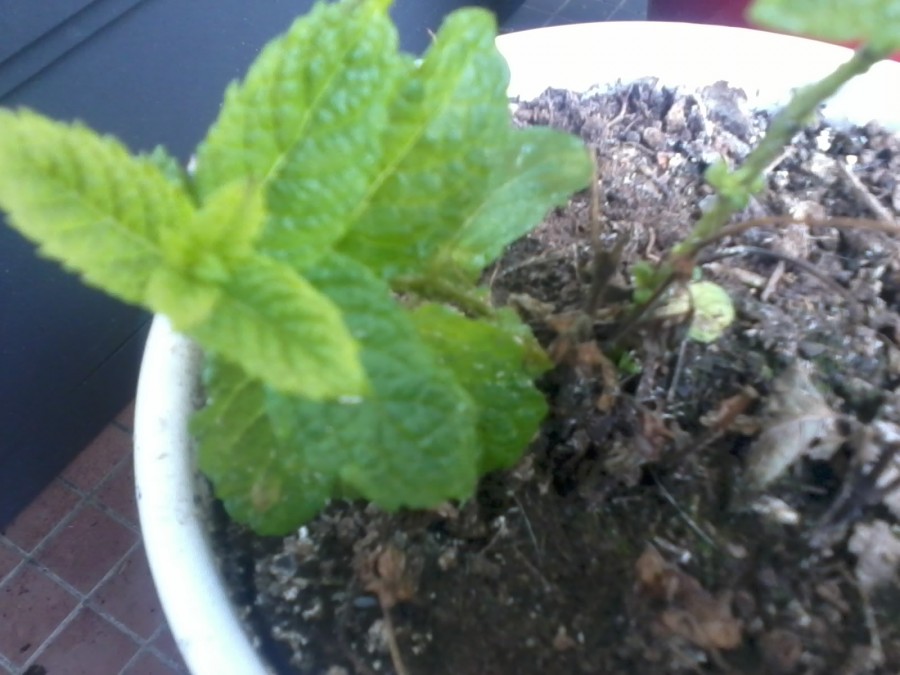 - Menthe (non visible sur cette photo là ^^) Elle reprends bien vie et j'ai plein de petites pousses dans la jardinière