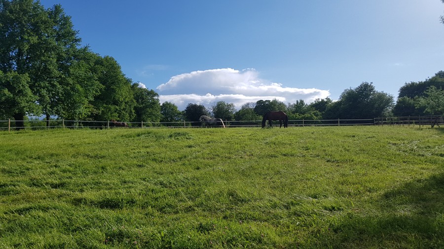 Et voilà, j'ai trouvé un petit coin de paradis pour virtu grâce à une cavalière des écuries qui a accepté de la prendre chez elle !