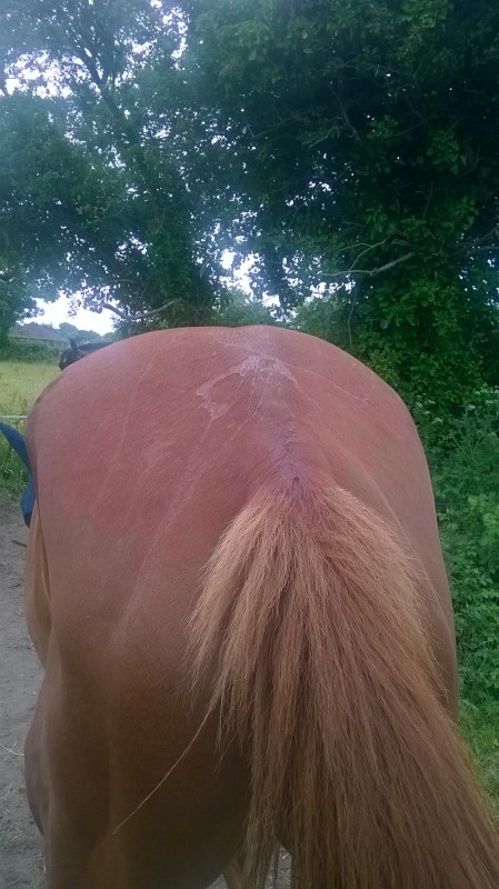 Par contre j'ai remarqué qu'elle avait pas mal de marques bizarres sur la croupe et sous la queue, qu'est que ça peut être ? C'est bizarre je trouve