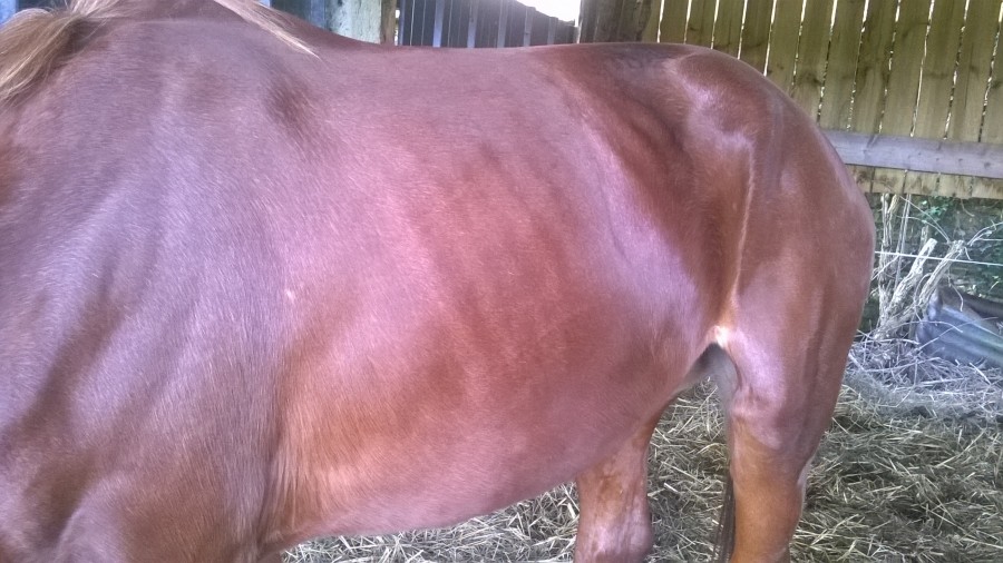 Elle a un poil et des crins sublimes, même couverte, elle a toujours autant d'appétit. Pour son bidon il est super doux, elle se muscle derrière aussi donc je pense que quand le terrain sera plus sec, je vais commencer à la longer une fois par mois (plus, moins ?) pour aider ses cuisses à se muscler, vous en pensez quoi ?