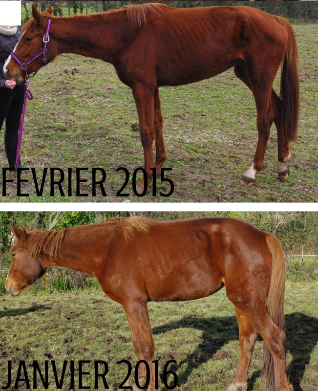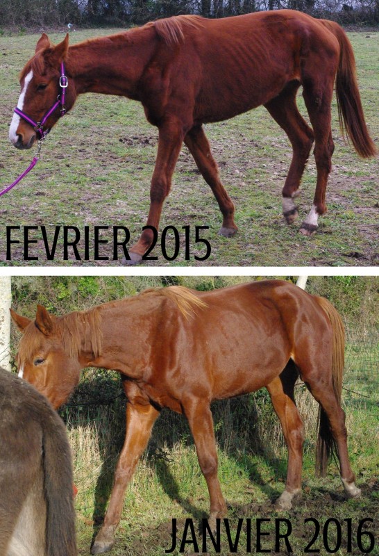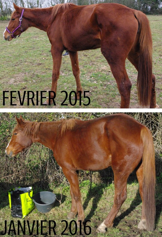 01/03 : Plus d'un an de combat, que du positif, toujours suivie ostéo/maréchal elle reprends du poids et se muscle. Début du travail en main pour apprendre le respect et les codes basiques.