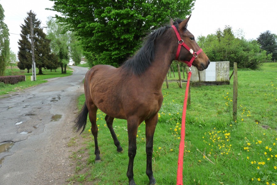 Diego marche en longe (ballade), tiens à l'attache et donne les antérieurs, on va pouvoir les curer! Il recule aussi, mais c'est pas encore ca. Donc notre priorité : les pieds et l'attache. Et oui, un esprit sain dans des sabots sains ^^