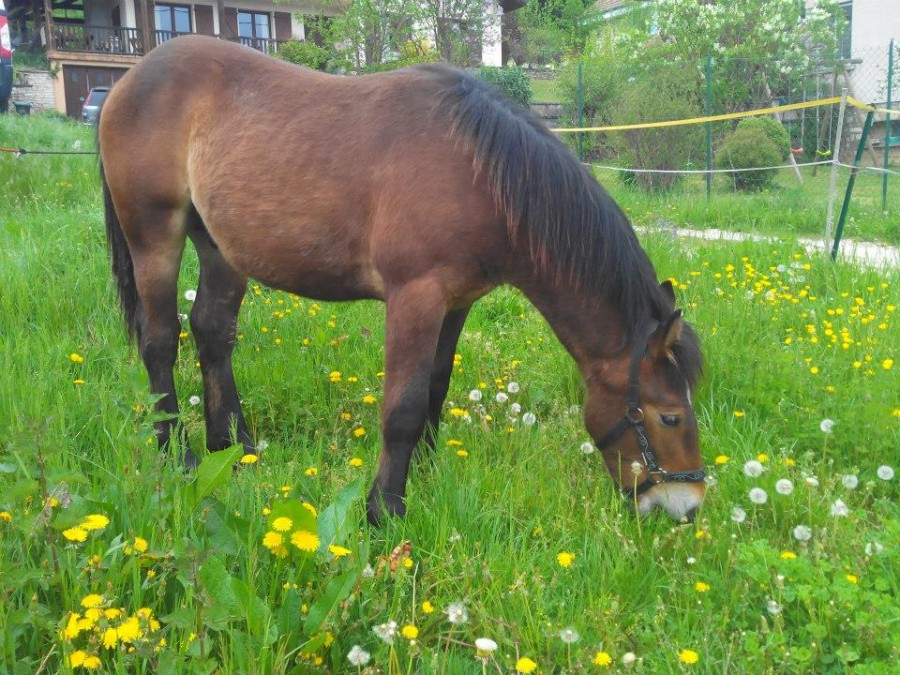 Elle est 3/4 PS : père, Kfar de Saba PS à 100%, réformé des courses avec de bons résultats et Nanou, une 1/2 connemara, 1/2 PS.