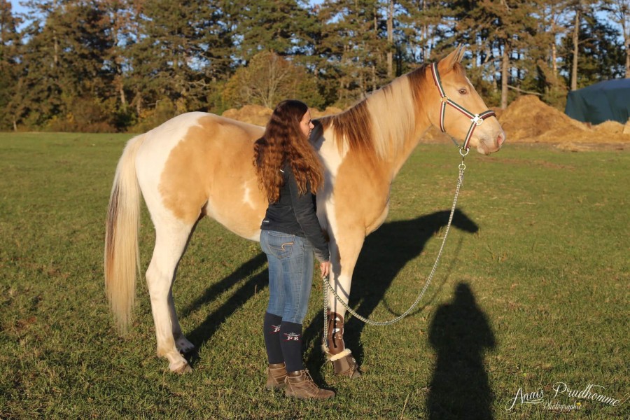 Cette semaine on a également posé la selle quelques instants. Sellé comme un vieu cheval, il n'a même pas levé la tête lorsqu'on a sanglé légèrement! Petit bébé d'amour! On a fait quelques pas pour aller brouter un peu plus loin et prendre des photos! Il est top mon bébé, très sage tout du long!