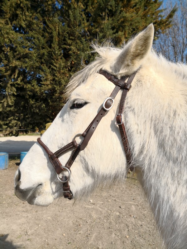 En longe, nous travaillons sur des séances courtes en caveçon. L'objectif est tracer des cercles aux deux mains. Un jour il accepte trotter, le lendemain que du pas...Des questions simples, comment ne pas confondre son prénom O(-)O avec l'onomatopée d'ordre Oo ?