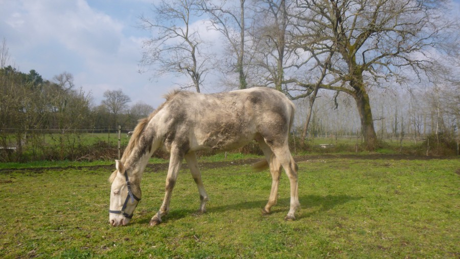 Je vous présente mon entier Otto, 33 mois aujourd'hui, à jour des ses vaccins. Nous nous fréquentons environ au moins un jour sur deux, depuis un mois, pour un pansage, un jeu au paddock, ou un tour de longe.
