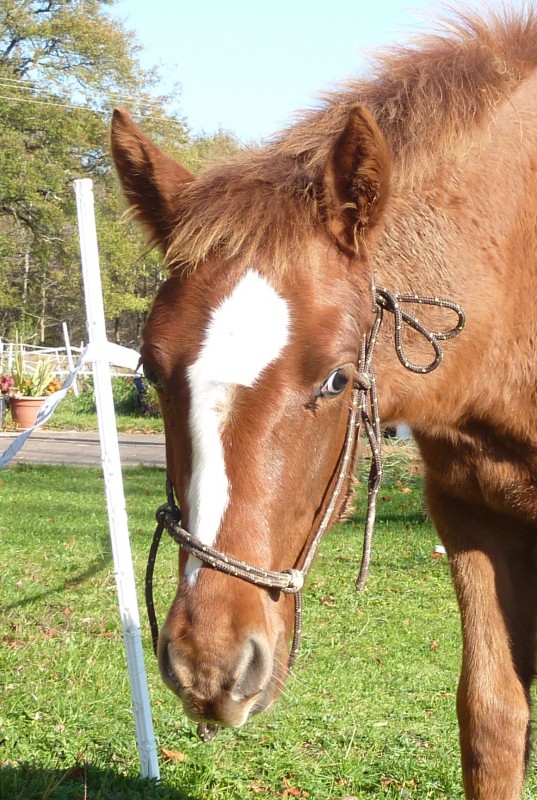 Sa "petite" tête (le licol poulain étant trop petit, il a à présent un licol en corde)