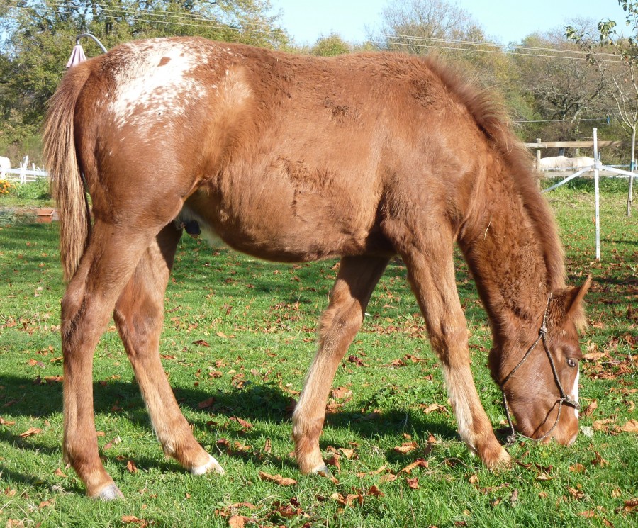 Des nouvelles du mien. Fébus a eu 6 mois le 10 novembre dernier et au vu de sa taille actuelle, il va devenir le "monstre" de mon troupeau, sans compter qu'il va gagner des centimètres en plus, vu sa castration précoce. Taille prévisionnelle : pas loin de 170 cm... Moi qui aime les chevaux vers 155 cm, je vais être servie !