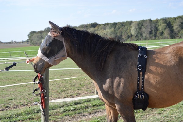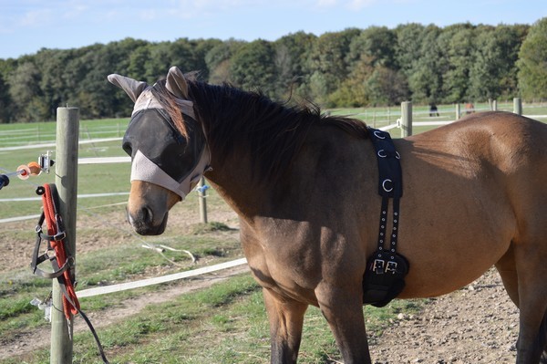 Comme c'est la catastrophe dès que je sors Flash de son pré, j'emmène le travail jusqu'à lui Aujourd'hui c'était le surfaix, en totale liberté, pour seulement la deuxième fois. Couplé à ça tous les soins que je lui fais depuis un mois, encore en liberté dans son pré, avec total consentement de sa part. Il est phénoménal