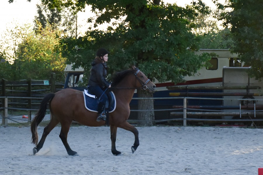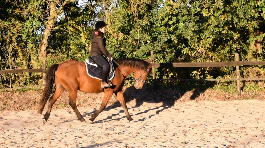 Moi, je reprends confiance, j'avais pas monté depuis plus de 10ans, sauf une demi pension que j'ai eu 2/3mois, j'ai perdu en assiette, fixité de ma jambe et souplesse dans mes mains, nous évoluons ensemble, toujours encadré pour éviter les erreurs et ça c'est chouette.