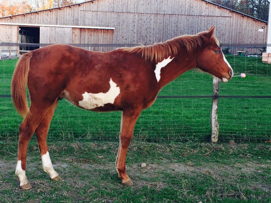 Et la semaine dernière j'ai réussi à le brosser grossièrement sur tout le corps (en licol et hors du pré par contre). Il est génial ce bébé
