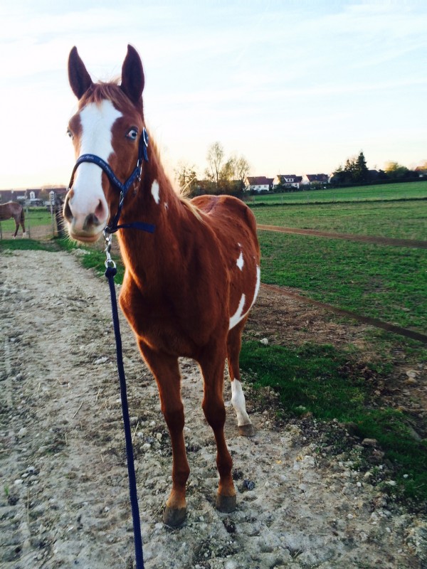 Contrairement à la veille, Monsieur était très très enthousiaste à l'idée d'aller faire tour ! Ces derniers temps je l'avais un peu laissé tranquille vu que je l'avais pas mal embêté avec ses bobos. Eh ben on le ressent en longe ! Il y avait beaucoup de monde à l'écurie cet aprem, il a ronflé presque tout le temps lors de mon petit tour et a fait deux ou trois sauts de mouton. Je l'ai recadré tout de suite à chaque fois mais je crois que c'est vraiment un poulain qui a besoin d'être manipulé régulièrement pour être serein.