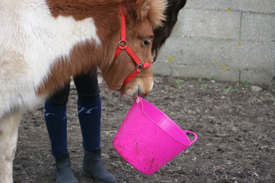 Ah oui, loulou aussi adore prendre tout et n'importe quoi en bouche ^^ Son seau, mon sac de pansage, brosse, la couverture de mon grand, les licols, etc...