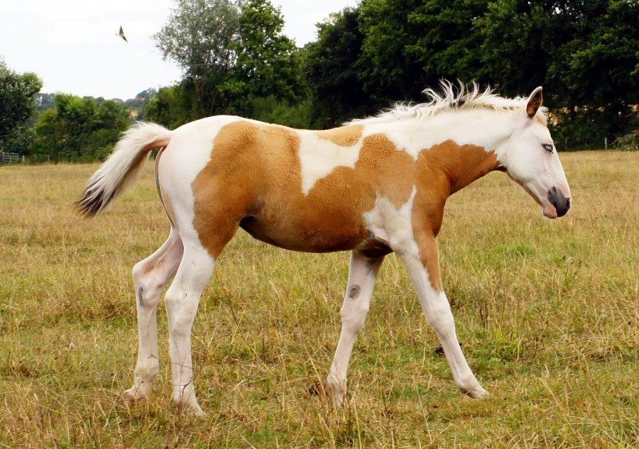 C'est une pouliche OC, papa paint X criollo, maman crème.