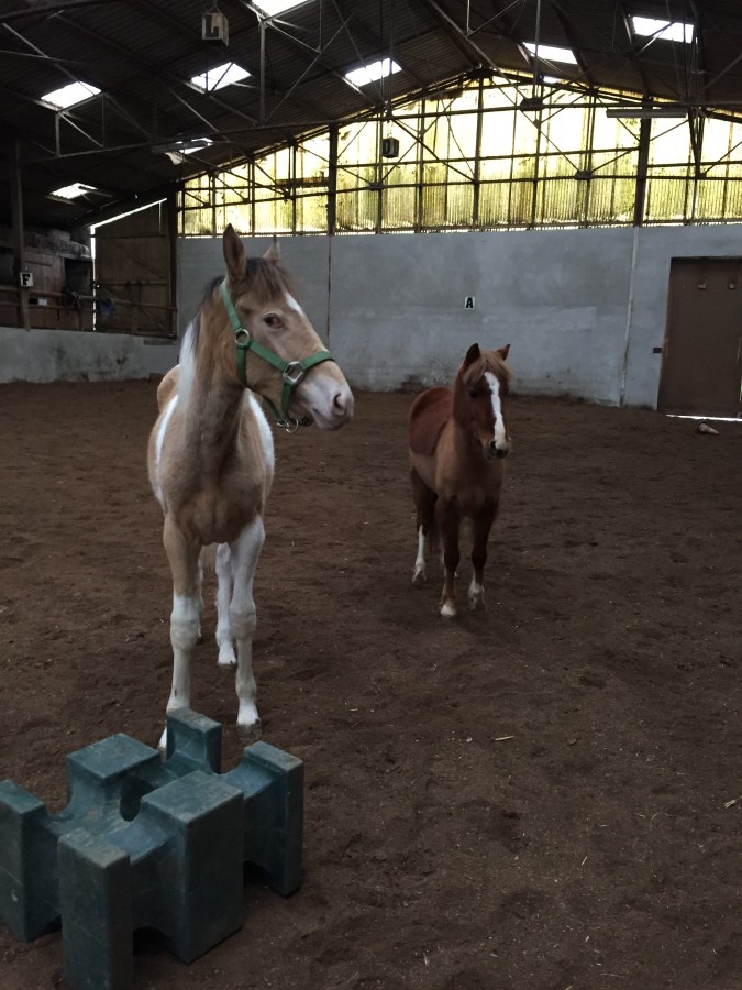 Pour ma part, je ne fais pas grand chose avec Falcone. J'ai déjà l'impression de lui en demande beaucoup du fait qu'il soit au box. Donc c'est juste sorti au manège avec des copains poneys.