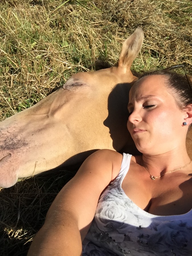 Je suis enfin retournée voir la Miss aujourd'hui ! Pansage et jeux pendant une petite demie heure parce que je meurs dehors de ce temps là moi ! Pourtant j'y suis allée à 18H30 mais il faisait encore 32°c c'est horrible ! Vivement que les températures baissent j'en peu plus moi . . .