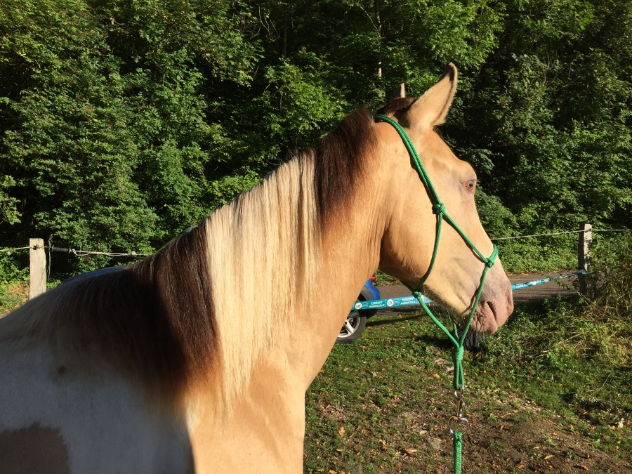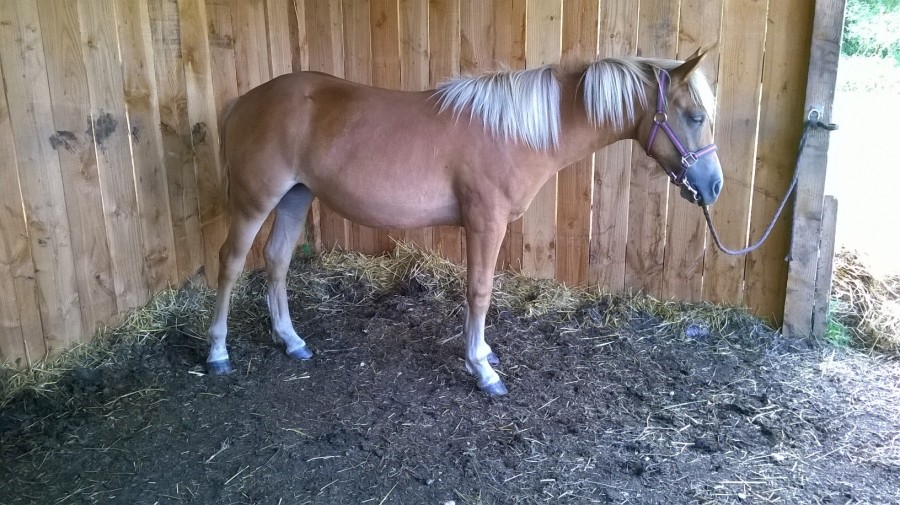 d'ailleurs voici quelques photos de la miss à peu près au modèle ( dur dur madame à du mal a rester en place ) si quelqu'un peu me dire se qu'il pense ... juste histoire d'avoir une petite idée ^^ je sais qu'a cet age la c'est un peu dur de juger à cause des poussées de croissance. ( d'ailleurs madame est en toboggan ^^ 1m27 aux fesses 1m22 au garrot ). moi je n'ai pas l’œil tres expert ... je trouve qu'elle a une encolure un peu mal foutu mais je ne serais dire trop pourquoi.... et mon MF m'a dit qu'elle avait les antérieurs un peu droits mais que si le parage était bien suivi il n'y aurait pas trop de problèmes .... bref place aux photos