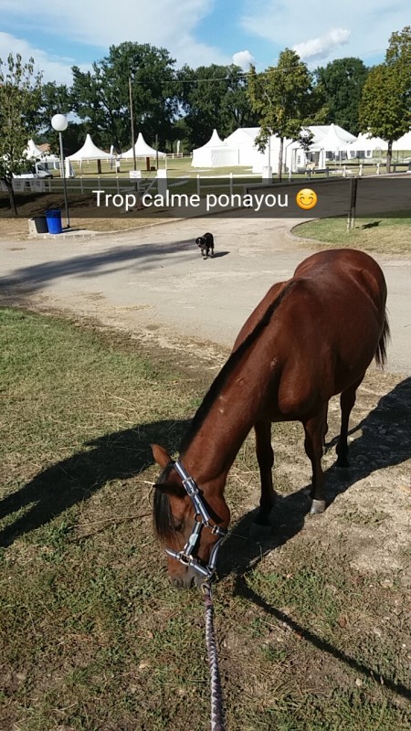pourtant il y avais de quoi faire l'andouille !! le club ou je suis aller me promener avait organisé le mondial de l'endurance et ils étaient entrain de tout démonter .... donc bcp de bruit , d'agitation , des tracteur, des tentes, des banderoles partout .... mais elle a était super calme