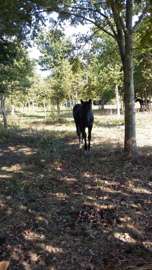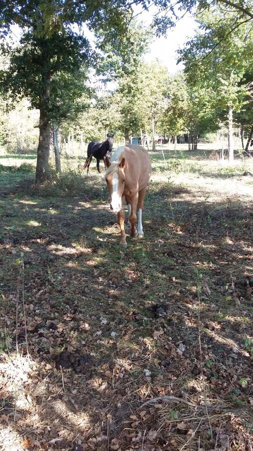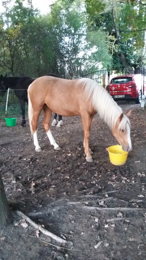 pollux77 Oui elle est caracterielle et test en plus, elle ne voulait pas du licol ce soir et préférait s'en aller, bah elle a eu le droit de galoper et de ne pas revenir tout de suite. Bah au bout de 2 min elle est venu me voir et c'est laissé mettre le licol, j'en ai profité pour faire un peu de reculer et déplacement des hanches avec pression de la main.