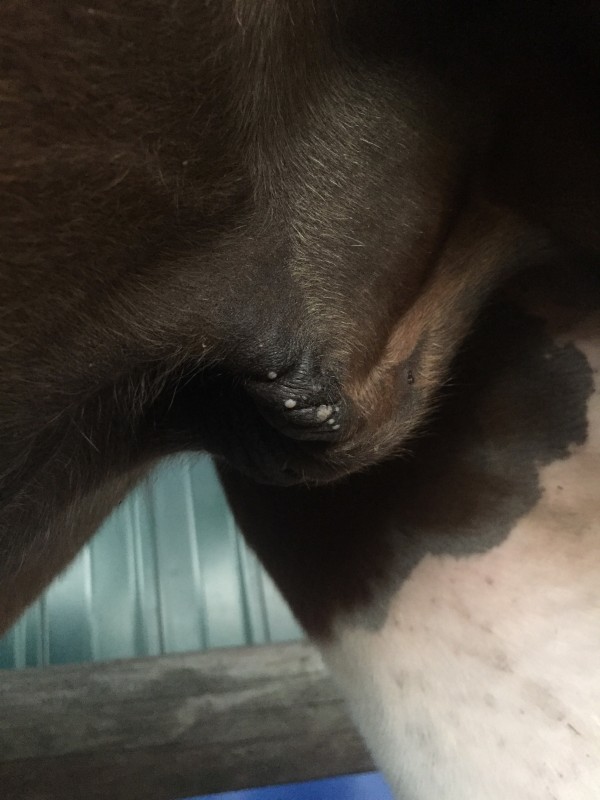 Il a aussi des points bizarres sur le fourreau et la fesse gauche rose sans croute ..