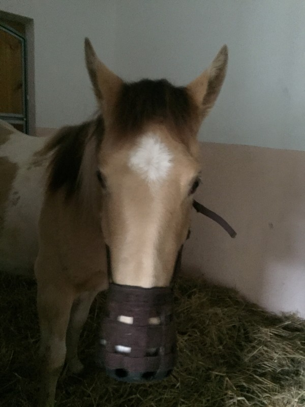 La véto est venu regarder et on a enlever le panier, il a droit à du foin à volonté et demain il va falloir marcher!