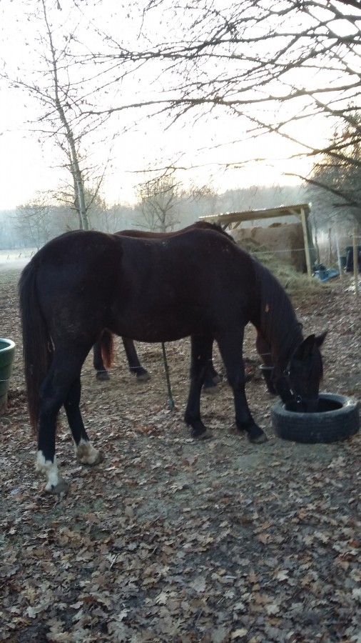 Falonne à eu 18 mois mardi et Firenza prendra 19 mois le 18 décembre. Pour l'instant rien de nouveau, quoi que si les pouliches étaient tellement intéresse par ma selle quand je sellais Ange, que je l'ai posé sur le dos, elles n'ont rien dit. Par contre la tête de mon cheval était très drôle à voir, et le nouveau jeu et qu'elles essayent aussi de mettre le mors. Au moins lors de leur debourrage le matériel ne posera pas de problème.