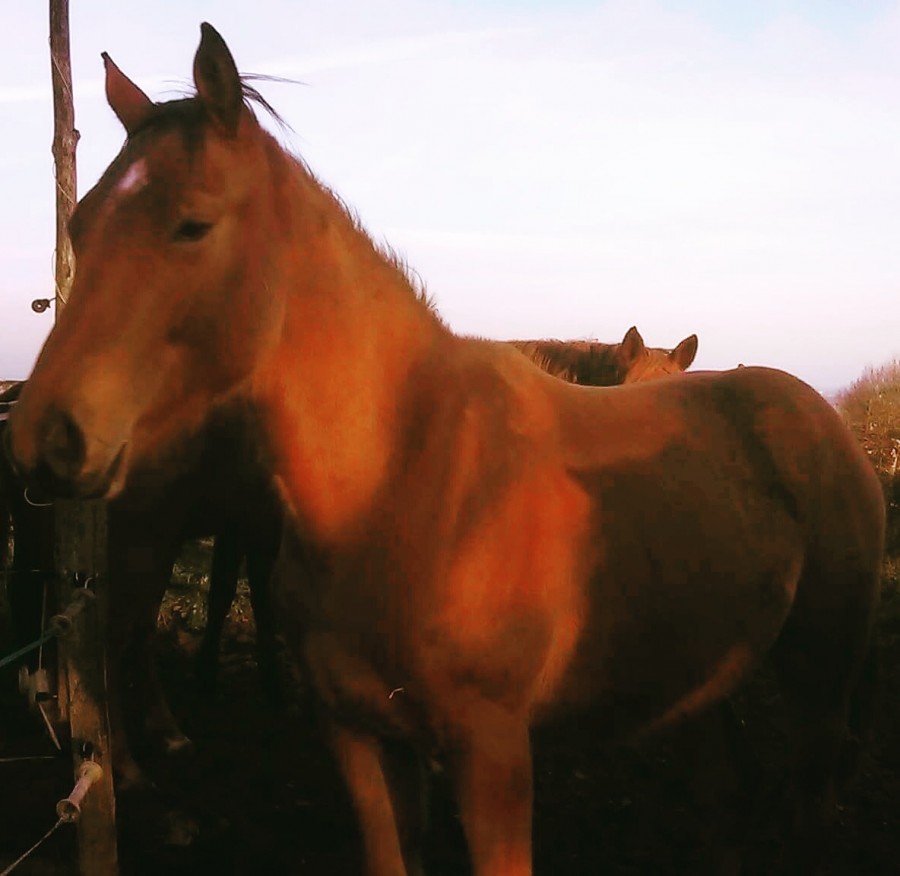 En effet, je rentre dans le pré et Fashion m'attendait déjà à la porte, Gaïa elle hennissait à ma vue ..