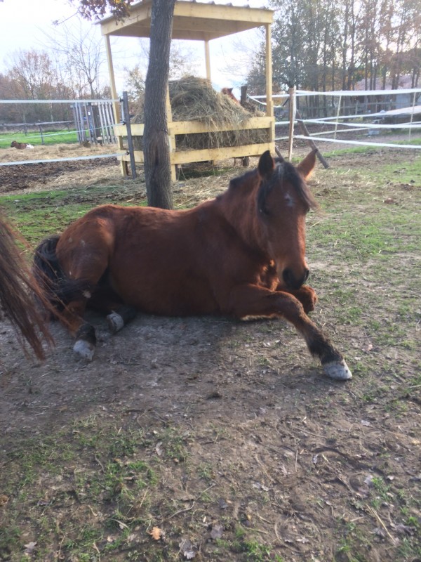 Je fais mon tour de pré et la petite rejoins Fashion, toujours debout sans rien faire dans son coin de pré...