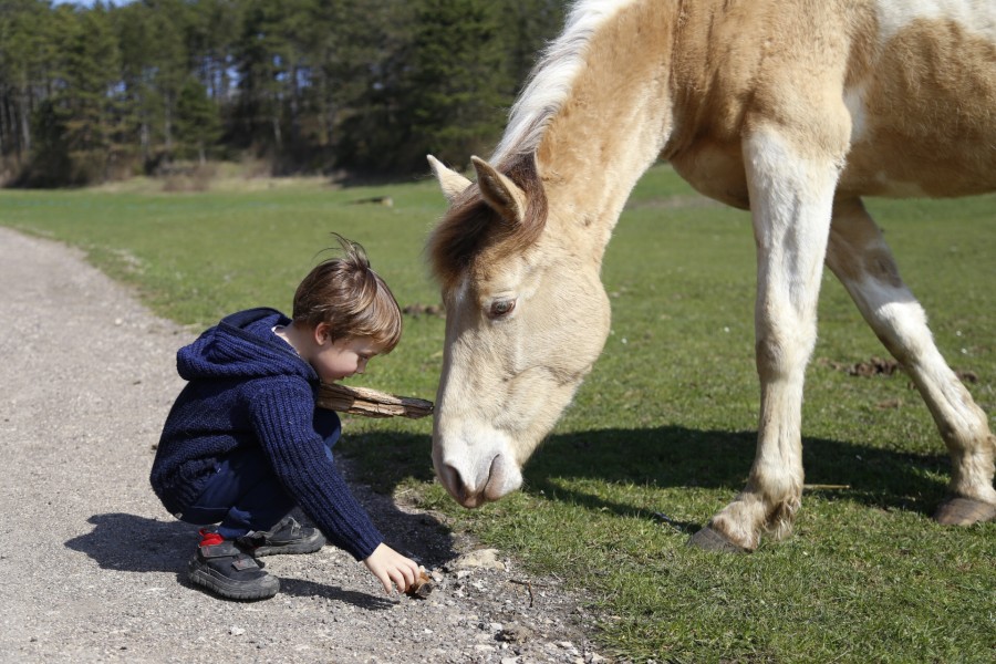 Allez des nouvelles de mon nain! Il commence à s'intégrer gentiment dans le troupeau et ne s'en va plus quand les jeunes viennent pour jouer... il y a du progrès!