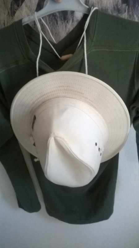 Derrière le t-shirt j'ai aussi accrochés un chapeau d’explorateur!