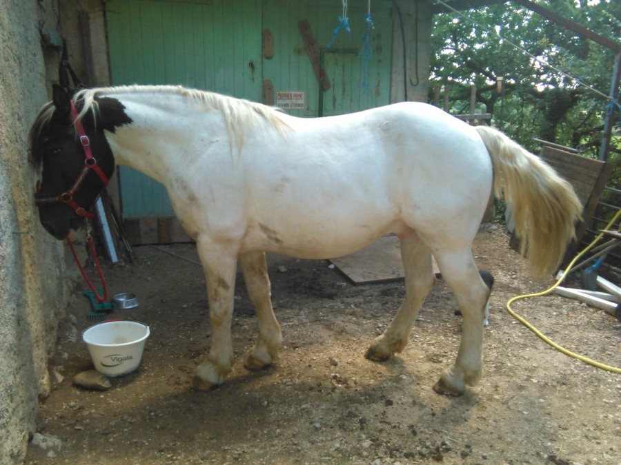 Je l'amène à la barre d'attache, je le brosse, lui cure, lui graisse les pieds et les 4, j'ai tenté de prendre les postérieurs avec un peu d'appréhension mais Fanfan a été sage !