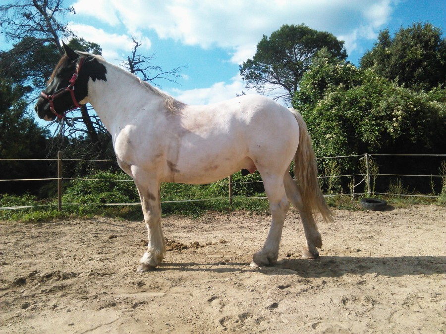 Des petites séances de pansage, Alfan donne bien les 4 pieds maintenant ! Il accepte également bien la selle, attaché et également en longe !