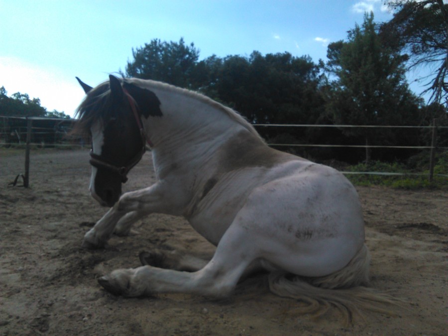 Cette semaine j'ai commencé à lui faire accepter correctement le filet, chez son ancien propriétaire il acceptait le mors mais il fallait se battre... Du coup j'ai tout repris à zéro, pour le moment je lui apprend à accepter la têtière sans qu'il lève la tête, ce n'est pas encore parfait mais on y est presque !