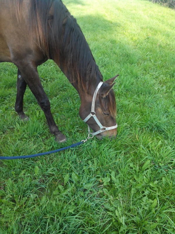 Ensuite, je lui ai mis le filet (sans miel sur le mors): impeccable! Puis le caveçon.