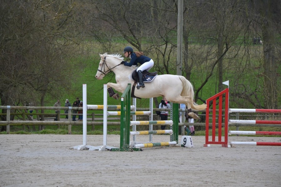 ). Strass sur le tapis, sur le filet, et sur le col de la cavalière
